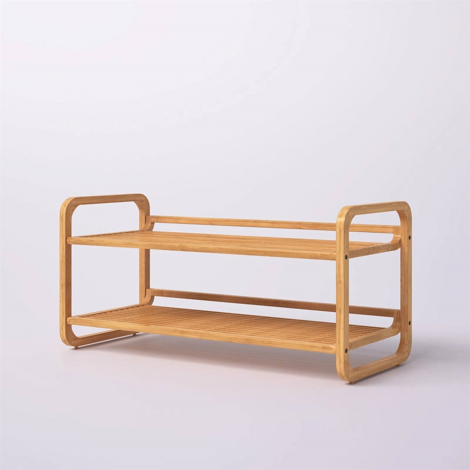 Bamboo Modern 2-Shelf Stackable Shoe Rack - Holds up to 8 Pair of Shoes