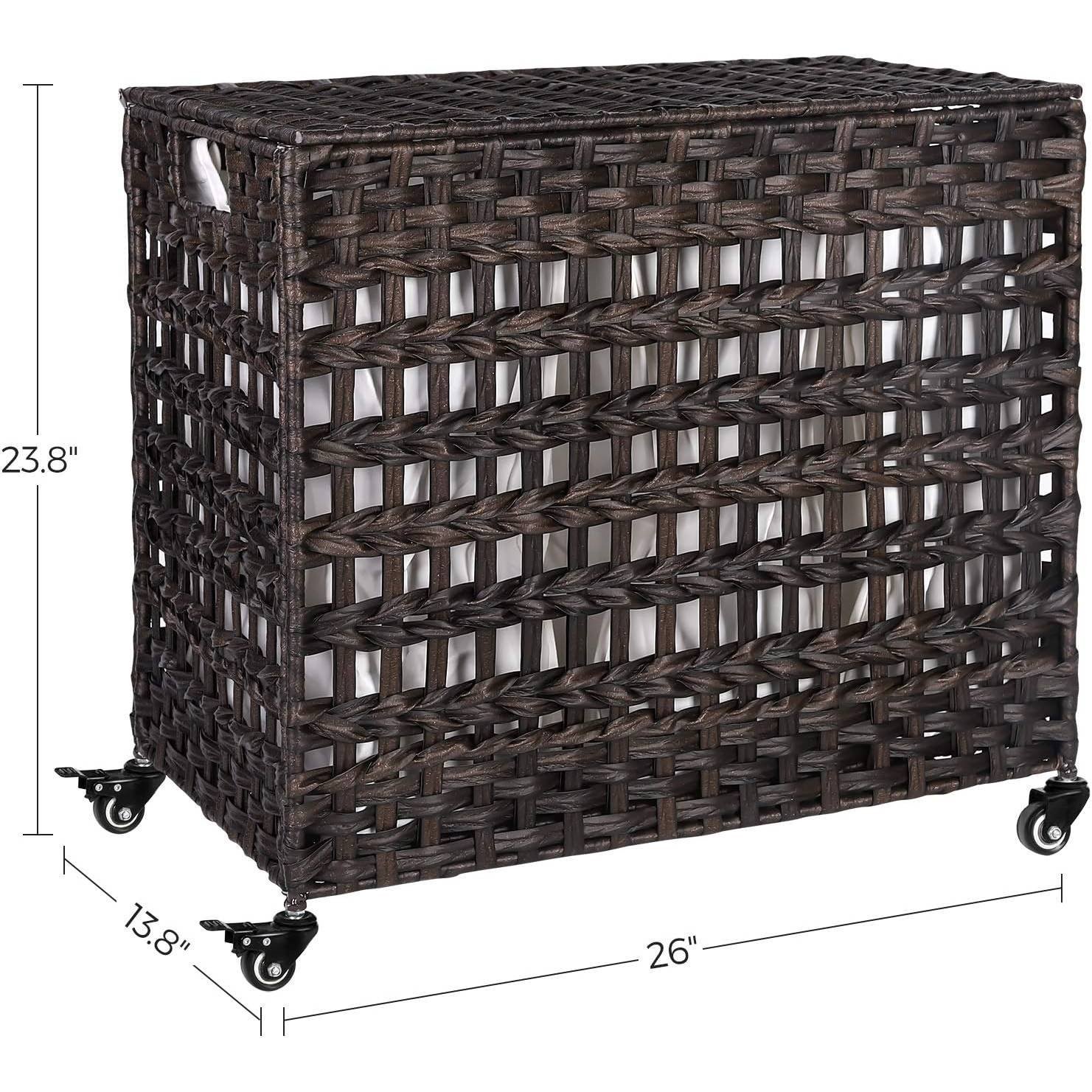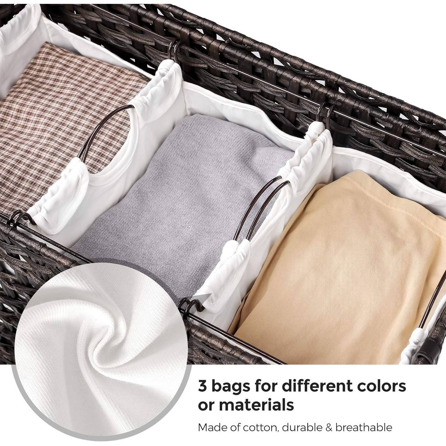 Brown PP Rattan 3-Basket Laundry Hamper Sorter Cart with Removable Cotton Bags Brown PP Rattan 3-Basket Laundry Hamper Sorter Cart with Removable Cotton Bags Brown PP Rattan 3-Basket Laundry Hamper Sorter Cart with Removable Cotton Bags Brown PP Rattan 3-Basket Laundry Hamper Sorter Cart with Removable Cotton Bags Brown PP Rattan 3-Basket Laundry Hamper Sorter Cart with Removable Cotton Bags