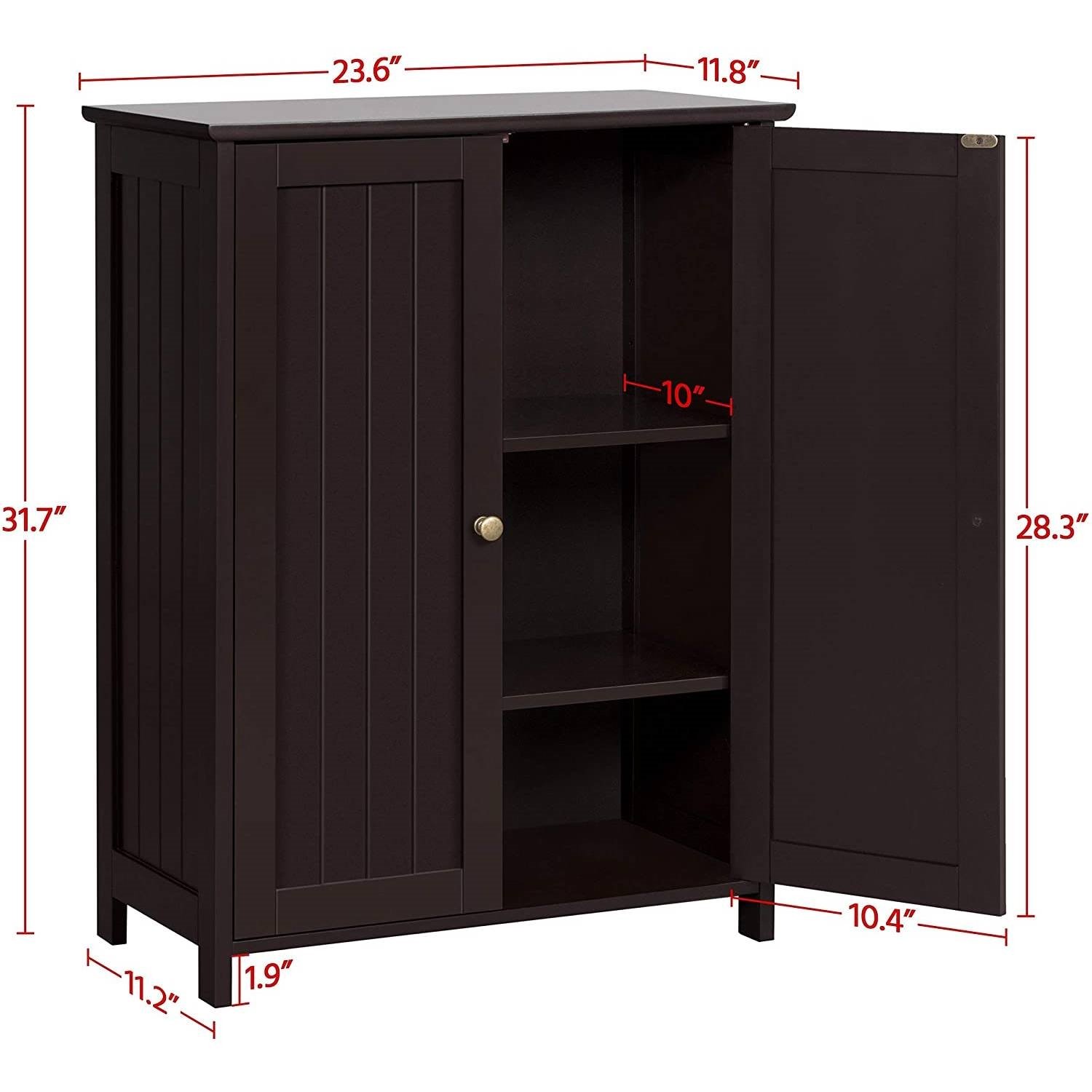 This Brown Wood 2-Door Freestanding Bathroom Floor Cabinet Kitchen Storage Cupboard would be a great addition to your home. This compact cabinet measures 60x30x80.5cm/23.6x12x31.7íí(LxWxH) yet gives spacious top open and behind door storage options. There are 2 shelves adjustable at three different heights so that you can explore the best use of the door-enclosed space while sorting out various items.