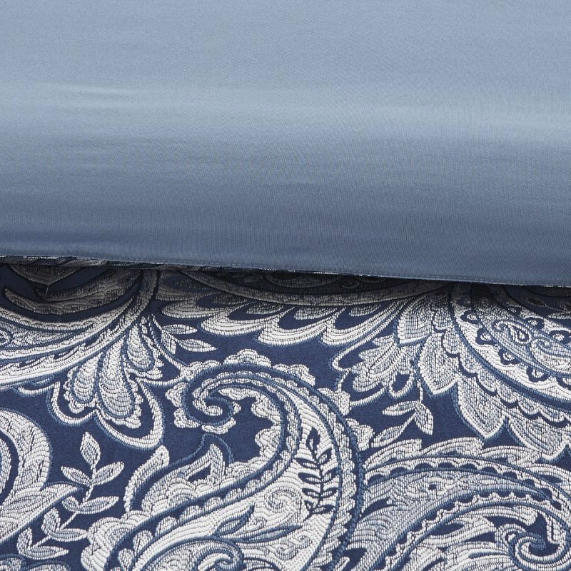 • California King 12-piece Reversible Comforter Set in Navy Blue and White