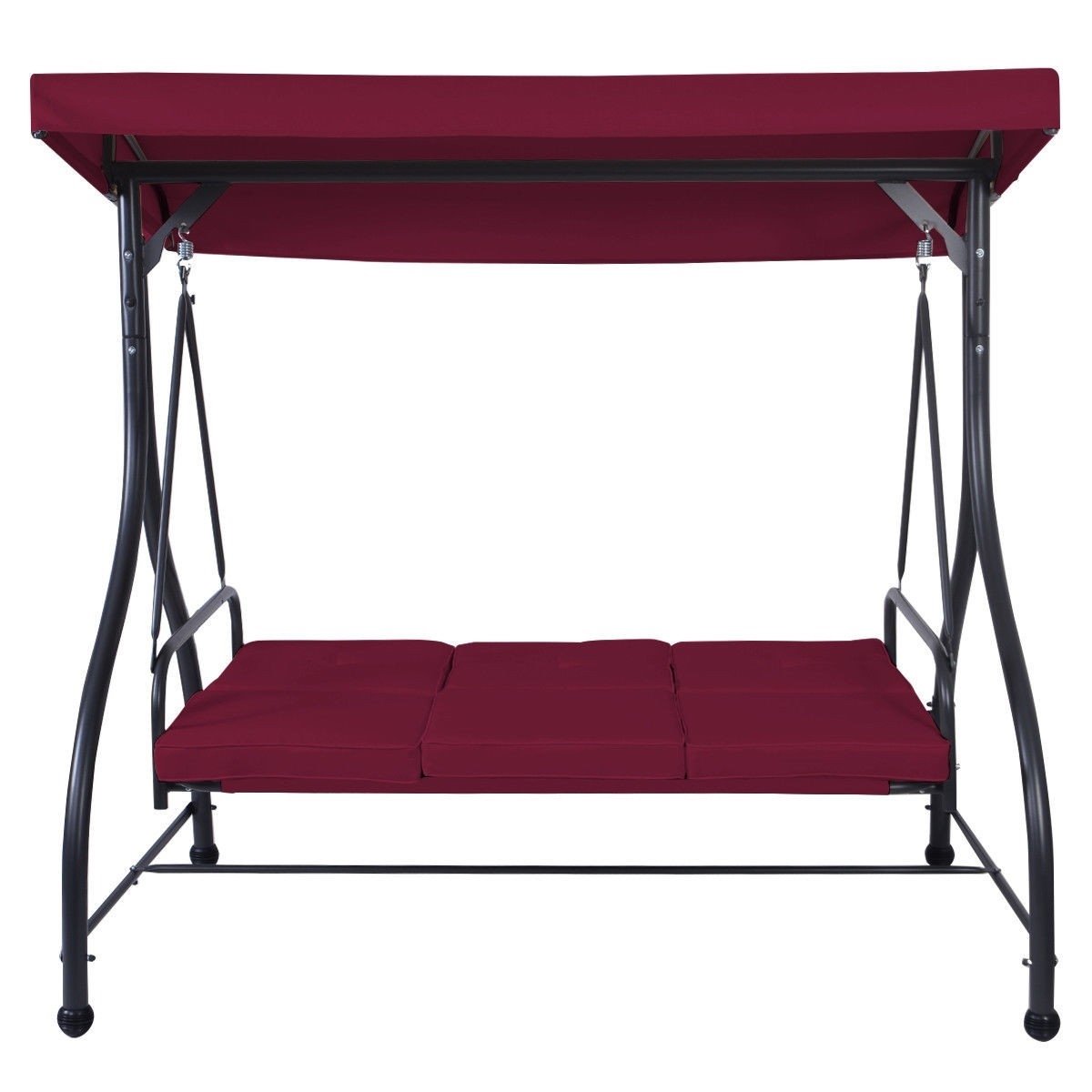 Dark Red Burgundy 3 Seat Cushioned Porch Patio Canopy Swing Chair
