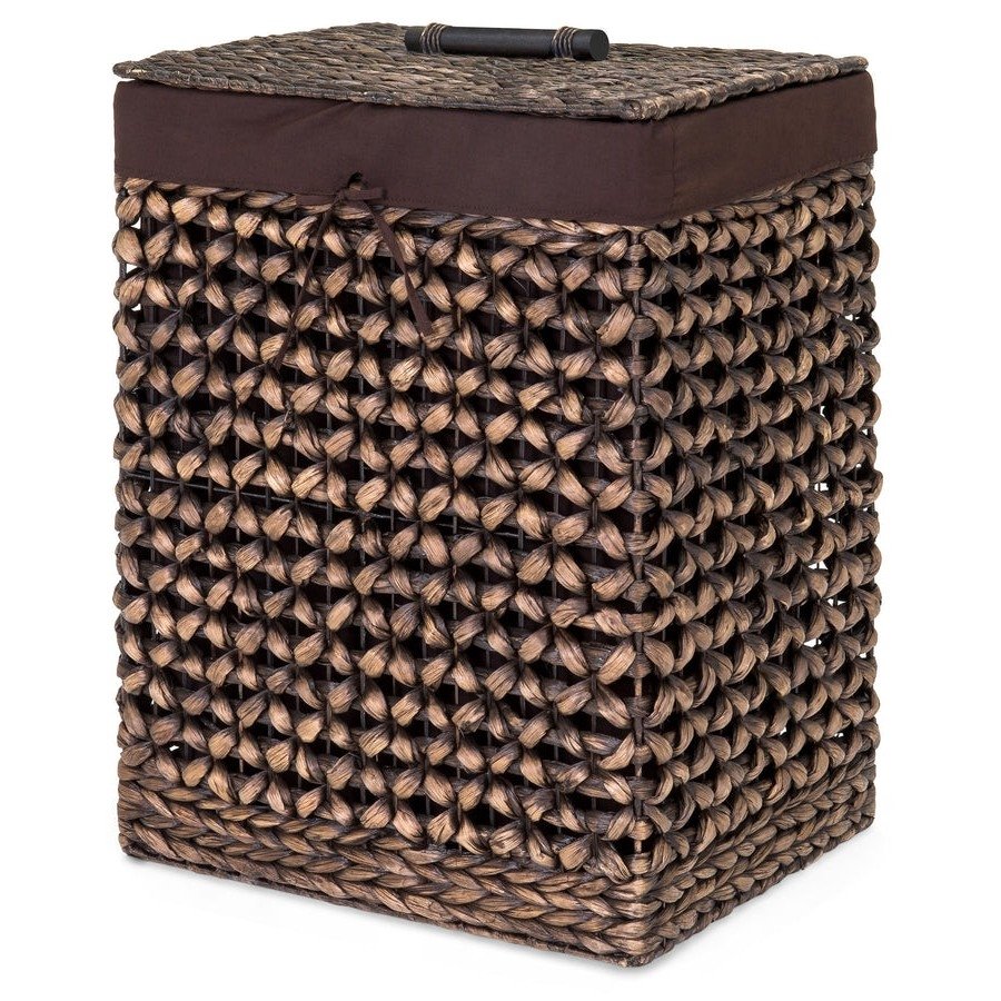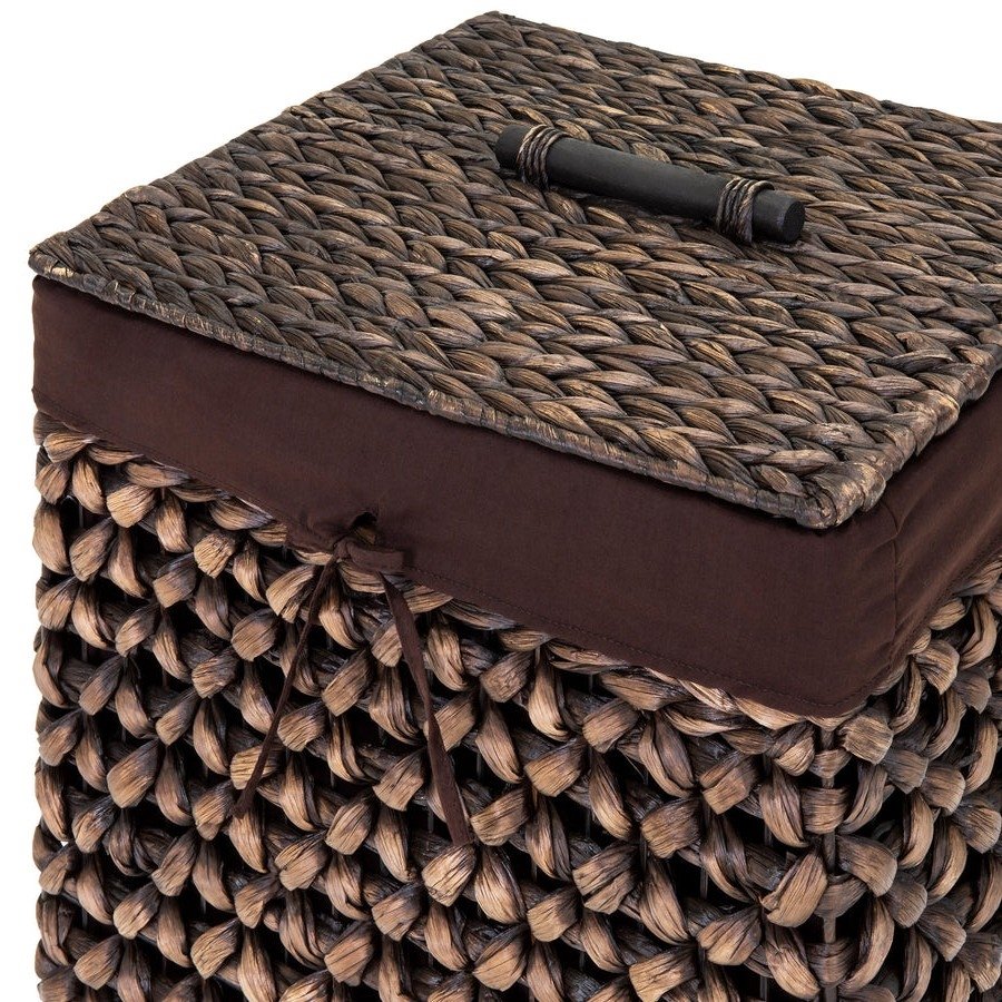Make your laundry a breeze with this Espresso Handwoven Hyacinth Linen Liner Laundry Hamper. This unique laundry hamper helps keep the room looking neat and organized with a convenient removable lid that keeps laundry out of sight and odors contained. Easily removable linen liner for effortless transportation to the washing machine. Crafted with hand-woven water-hyacinth for an attractive, natural design that maintains its cleanliness.
