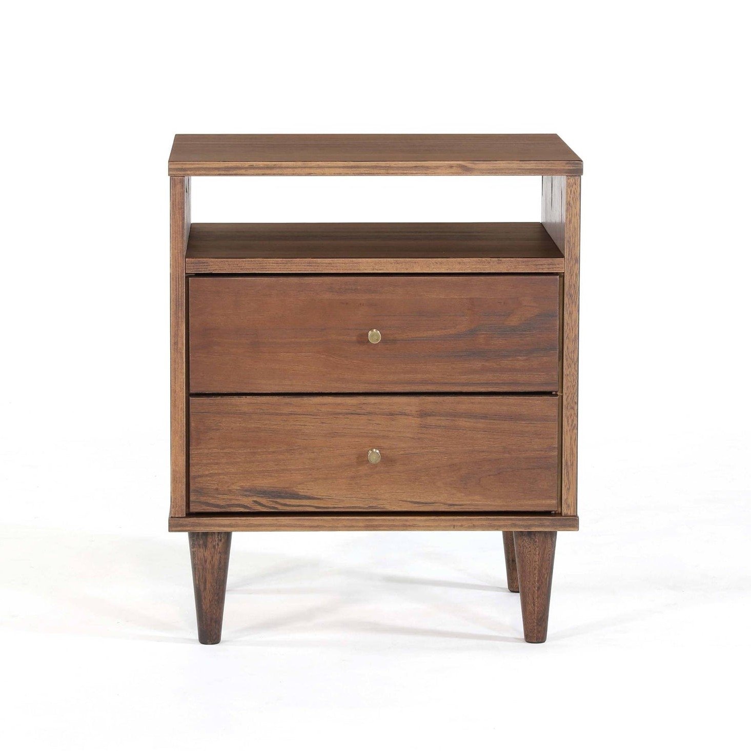 Home > Farmhouse Rustic Walnut Mid Century 2 Drawer Nightstand