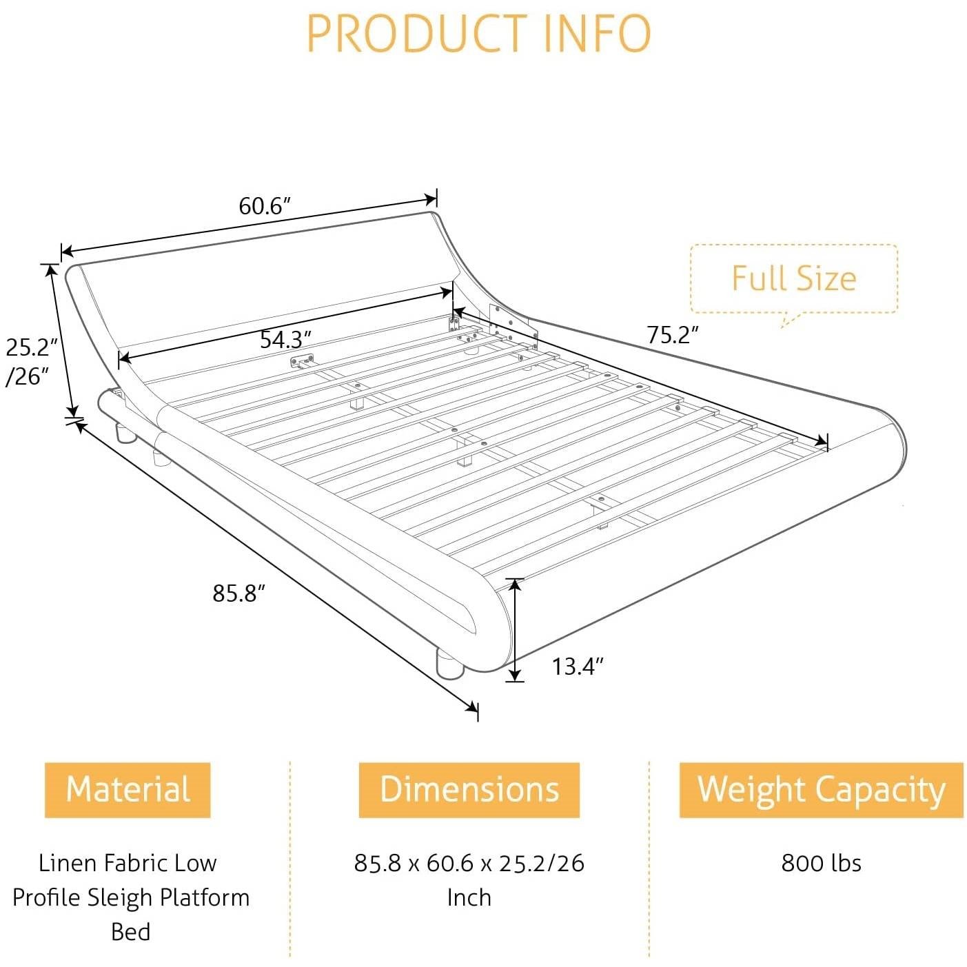 Hate carrying heavy boxes upstairs? We hate it too! So we make the whole set bed in one box only for easy moving around. This Full Modern White Faux Leather Upholstered Platform Bed Frame with Headboard is safer for little kids to climb around and no room for pets hiding below. Let's enjoy all the sweet moments only in bed! Great quality leather keeps no fur or hair,best for pets keepers. FRESH FOR YOUR HEALTH. No chemical smell to harm your health. SKIN FRIENDLY. Skin friendly material that feels soft every night.