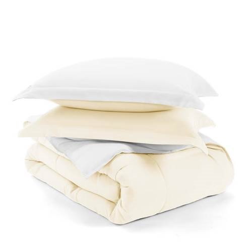Elevate your bedroom or guest room with this classic King/Cal King 3-Piece Microfiber Reversible Comforter Set White/Cream. We love that this set comes in a range of colors, so you can find just the right look for your space. Itís also reversible, so you can switch up your look with ease. All pieces are made of 100% microfiber, which is lint-free, non-pilling, and resistant to wrinkles; theyíre also machine washable, so keeping everything fresh and clean is a breeze. The comforter and shams are filled with 5.31 oz. fill weight polyester in a solid hue with a baffle box weave.