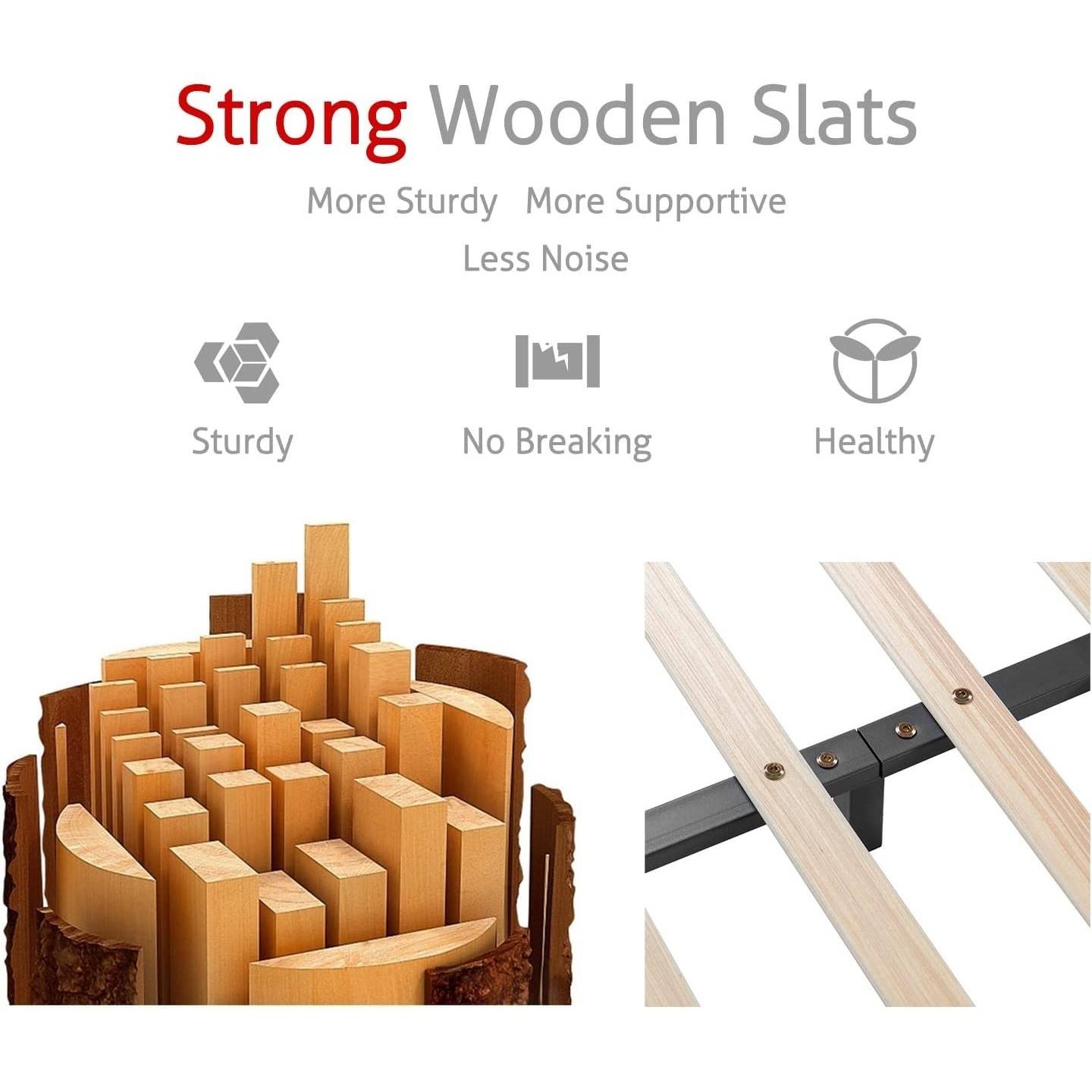 • Wooden slat support system eliminating the need for a box spring
