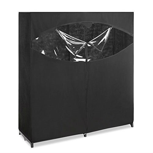 Store seasonal clothes or create a permanent clothing storage solution with this Metal Frame Black Fabric Wardrobe Clothes Closet Garment Rack. The closet features added wired support for 60-Inch closet rod and a zippered front opening with clear view window. New easy assembly using a bungee cord system.