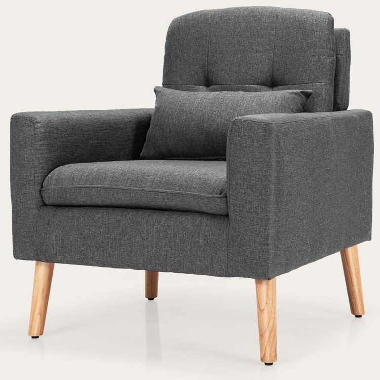 Home > Mid-Century Modern Living Room Accent Chair with Pillow in Grey Linen