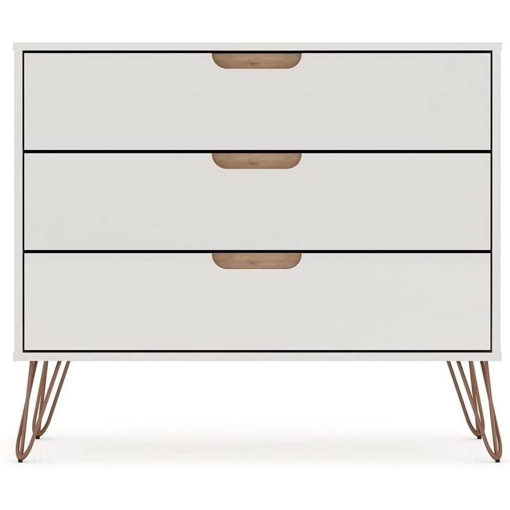 Bring some modern style to your home with this Mid-Century Scandinavian style dresser. This Modern Bedroom Scandinavian Style 3-Drawer Dresser in Off-White Natural Finish will fit into even the smallest of homes while still bringing sleek and practical style. With ample storage and minimalistic mid-century modern style, the Modern Bedroom Scandinavian Style 3-Drawer Dresser in Off-White Natural Finish is the perfect accompaniment to any bedroom space. Cutout handles keep the piece feeling fresh, and triple drawers offer plenty of space for clothing, personal items, and more. A display top provides space for showing off a decorative lamp or for sharing favorite framed family photos, travel trinkets, and perfume trays. Set this dresser under a mirror or painting to complete your space and create an instant bedroom focal point. It wonít take up much room but will seriously deliver on quality and style. This piece is made of high-quality solid wood with metal accents to ensure durability and lasting beauty. Choose between cutout edge handles or a flush design to make this piece truly your own. Undeniable quality, a stunning look, and convenient storage come together to make this piece a must-have for any home or apartment.