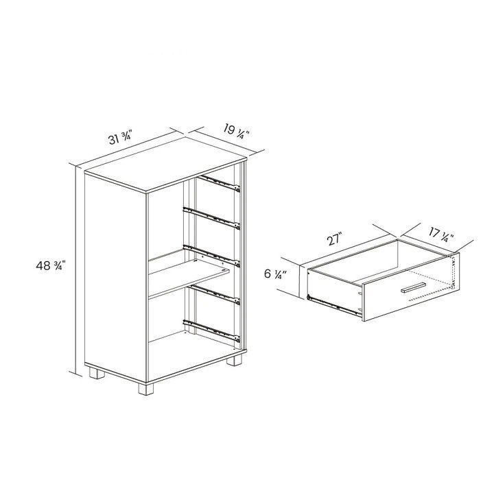 • Dimensions: 19.25 D x 31.75 W x 48.75 H