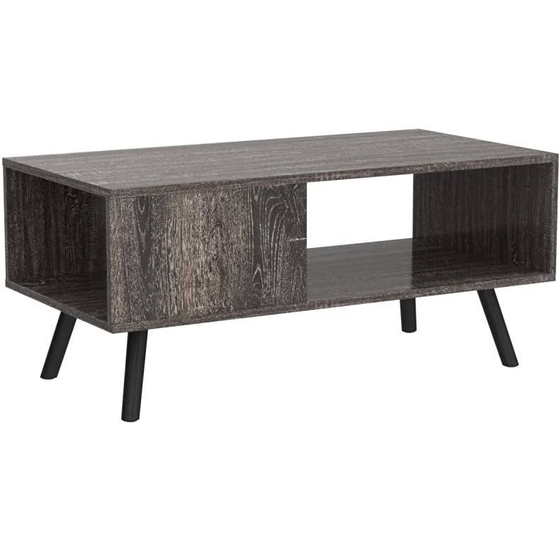 Modern Mid-Century Coffee Table Living Room Storage Shelf in Rustic Black Wood