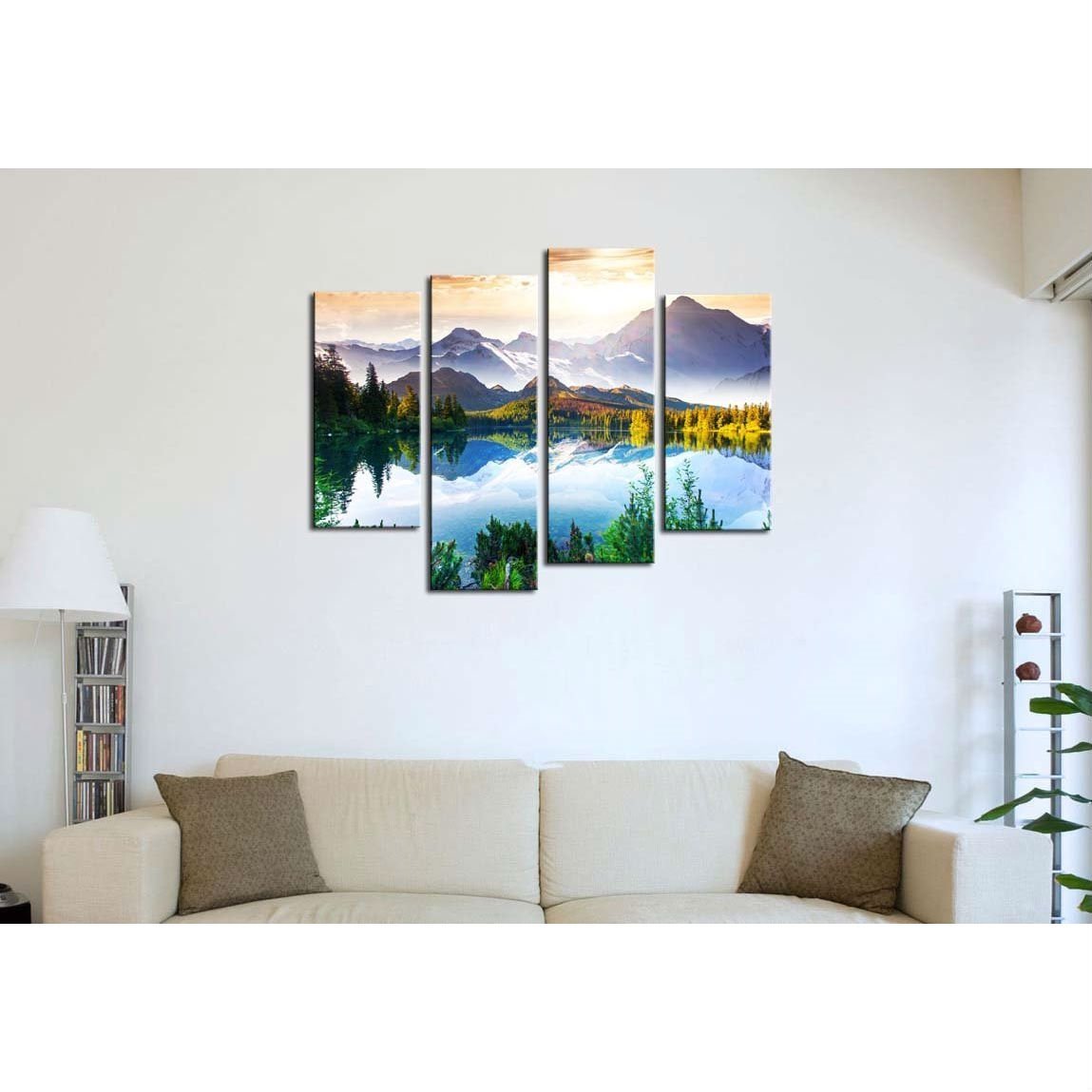 Mountain Forest Lake 4-Panel Wall Art Canvas Print Picture