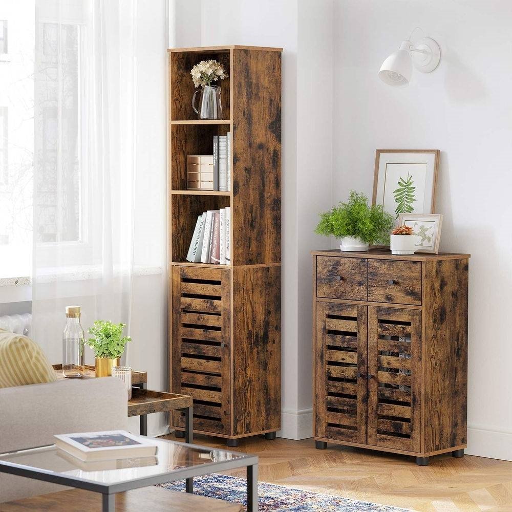Rustic shelves are elegant stages for displaying your souvenirs in the living room, your mug collection in the kitchen, or your favorite books in the bedroom; this Narrow Brown Wood 3-Shelf Bookcase Bathroom Livingroom Storage Cabinet reflects your faves while satisfying your storage demands. Want to make the most of small corners? This 15.7″L x 11.8″W x 65.7″H tall cabinet comes with 3 open shelves and 2 adjustable shelves behind the door to help you maximize the storage space and organize differently sized items. And yes, you don't even have to worry about difficult assembly because this storage cabinet comes with clear instructions and numbered parts for zero hassle! Enjoy! Yes, safety is our top priority. Therefore, this bathroom storage cabinet is equipped with an anti-tip kit, which gives it good stability and protects it from tipping over. For safety, be sure to secure the product to the wall with the included anti-tip kit.
