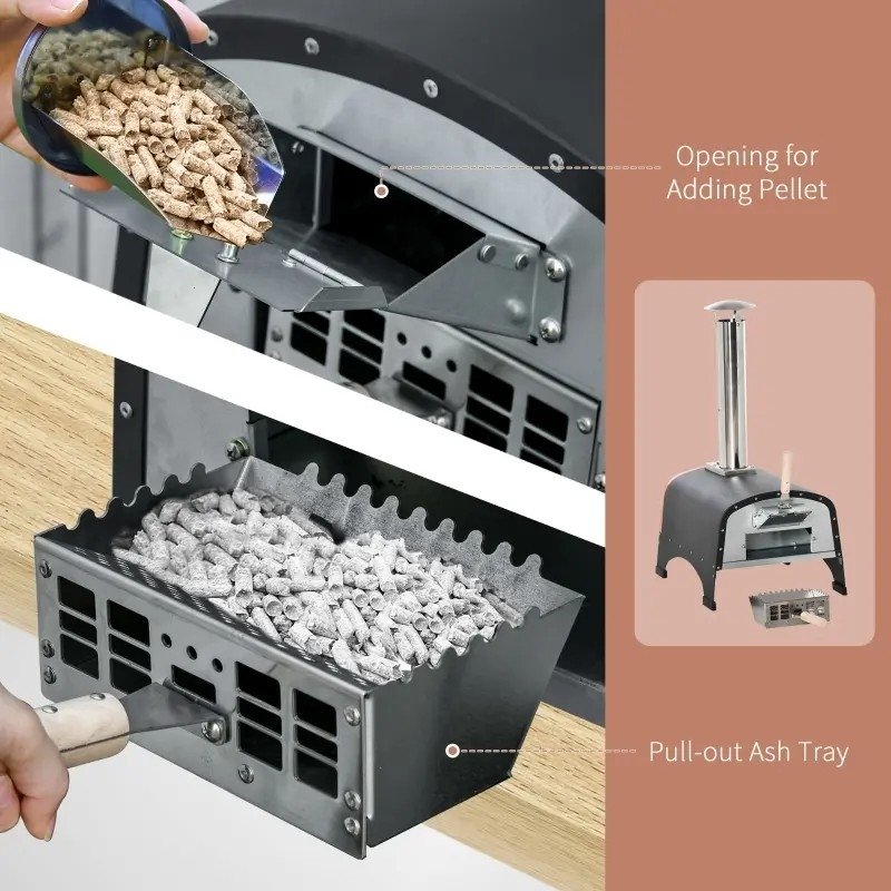 Create and cook restaurant-quality pizza in the comfort of your own home with this Outdoor Backyard Portable Pizza Oven with Thermometer. This pizza oven can bake a 10-inch pizza and also allows you to bake bread, cookies, pies, and any other pastry to perfection. Suitable for professional and amateur pizza makers, even the new learners. It is made into an easy-use design, where a thermometer on the top keeps you aware the heat level, along with a tall chimney which safely extracts the smoke upwards to protect you and others around. And the pull-out ash tray at the back makes it easy to clean. A great excuse for getting everyone over once the sun comes out to shine.