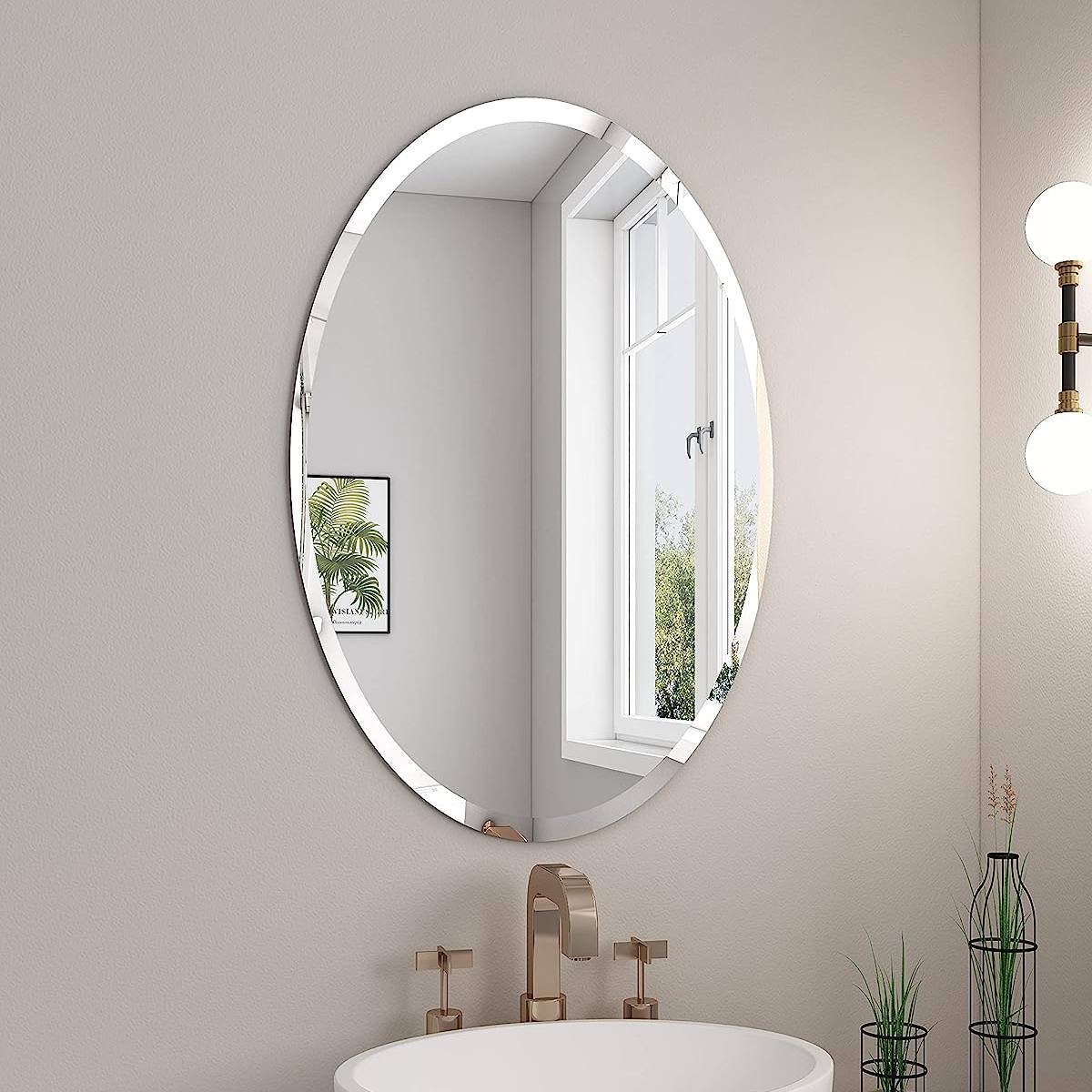 • Oval 36-inch Frameless Beveled Vanity Wall Mirror