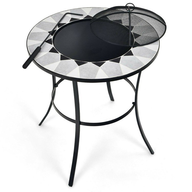 Portable Round Fire Pit Table with Mesh Cover and Fire Poker Portable Round Fire Pit Table with Mesh Cover and Fire Poker Portable Round Fire Pit Table with Mesh Cover and Fire Poker
