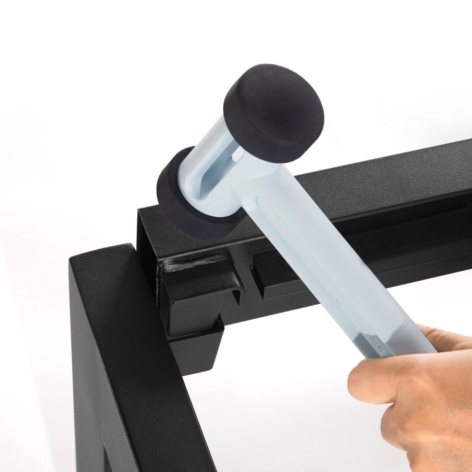 Make the simple life much easier with the Queen size 18 Inch Easy Assemble Metal Platform Bed Frame Wooden Slats. The only tool you need to set up a platform bed is a mallet which comes already included. The Queen size 18 Inch Easy Assemble Metal Platform Bed Frame Wooden Slats is made of a premium heavy duty steel with clean edges, giving your space a refined and modern look. There is ample space beneath the frame accommodates for extra storage to help keep your room organized. With no box spring needed, easily assemble and place your mattress on top to make a simple yet bold statement.