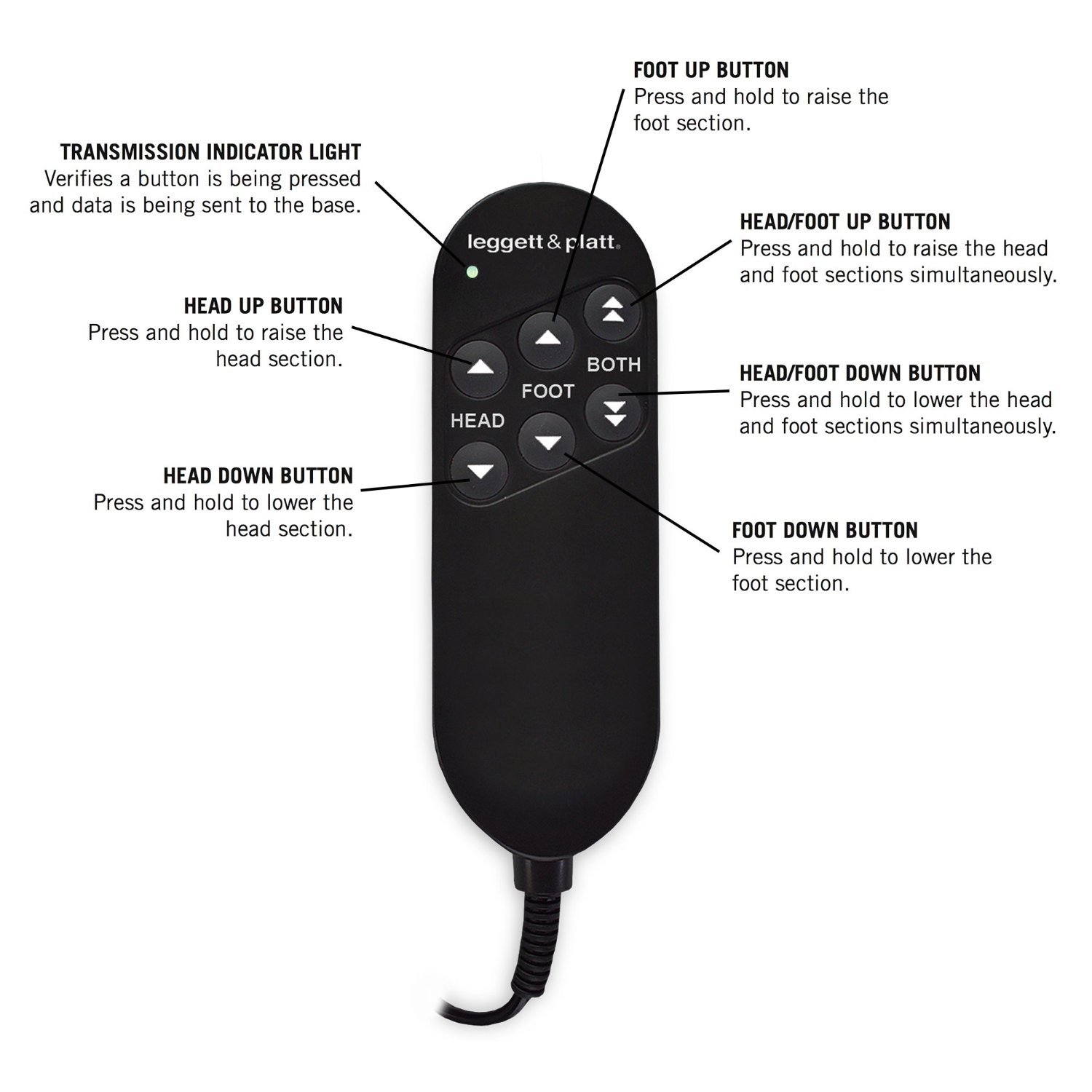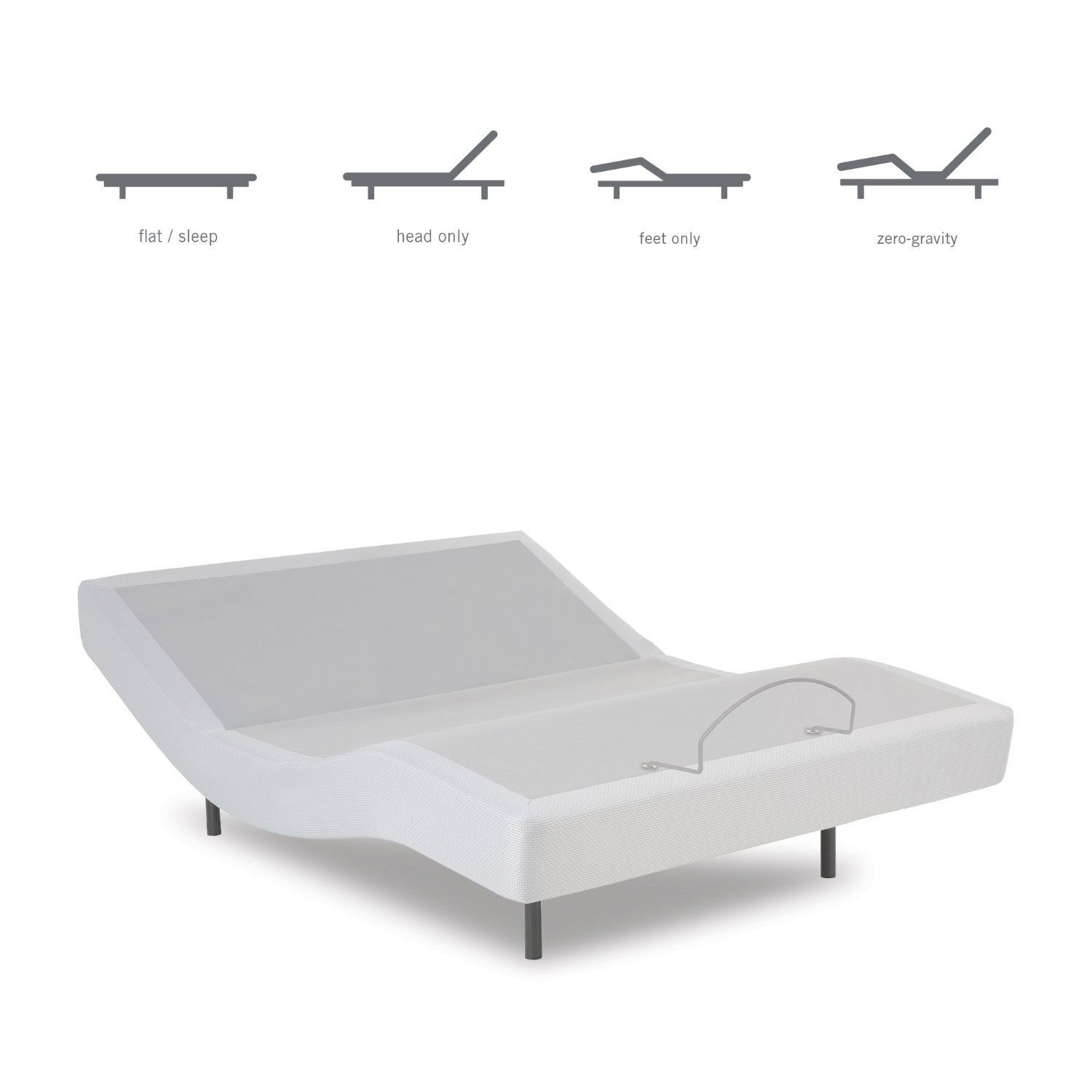 We watch TV, read, and work from the comfort of our beds. Itís the oasis at the end of a long workday where we seek a tranquil environment that inspires relaxation and rejuvenation. This Queen size Head Foot Adjustable Bed Base with Remote is a stylish adjustable base that will add to comfort, convenience and style to the hours you spend in your bedroom. This base includes full-body, head and feet articulation through a wired remote to control that will raise the feet to the same level as the heart in a zero gravity position to increase blood circulation, ease stress and reduce soreness in the body. These angle adjustments alleviate body pain and moderate or eliminate snoring, allowing you to receive the highest level of personal comfort and the sleep you need. Did you also know most brands of innerspring, foam, or air mattresses are adjustable-friendly? This means your current mattress could be compatible and used with the Queen size Head Foot Adjustable Bed Base with Remote. The gorgeous, contemporary gray patterned fabric provides a great neutral fit to any room, and 7-inch black steel legs are included to complete the look. The high-performance motor has a 550-pound total max weight, gravity stop safety feature and CSA-certified to both UL and CSA applicable electric motor standards. This base measures 16.5-inches (H) by 60-inches (W) by 80-inches (L). The Queen size Head Foot Adjustable Bed Base with Remote comes with a 1-year full product, 3-year parts and labor, and 25-year parts only warranty.