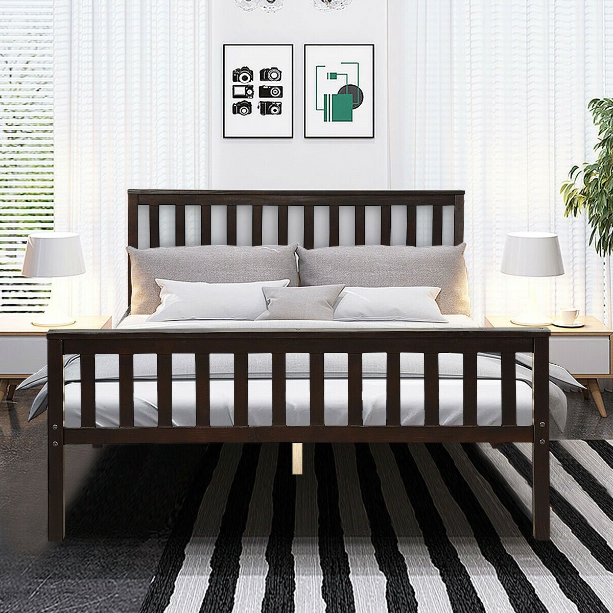 • Queen Wood Platform Bed Frame with Headboard and Footboard in Espresso