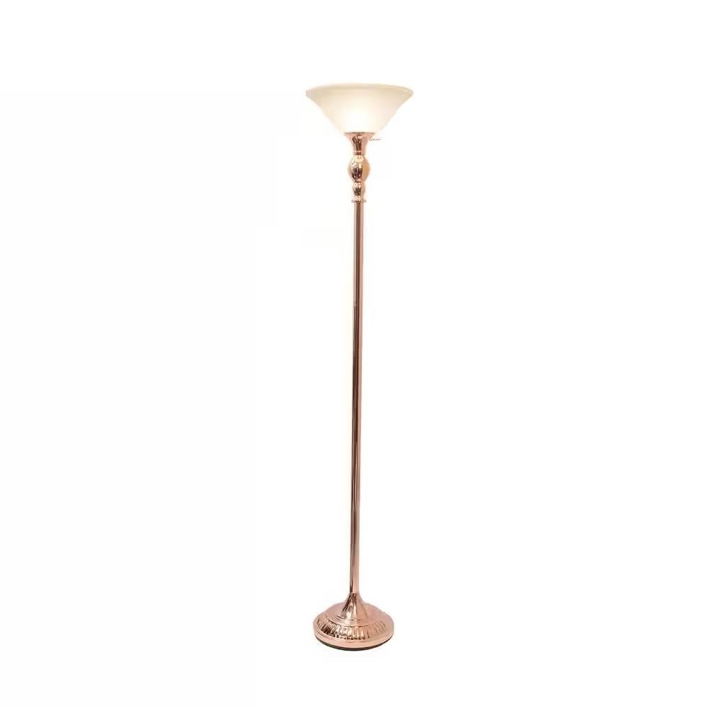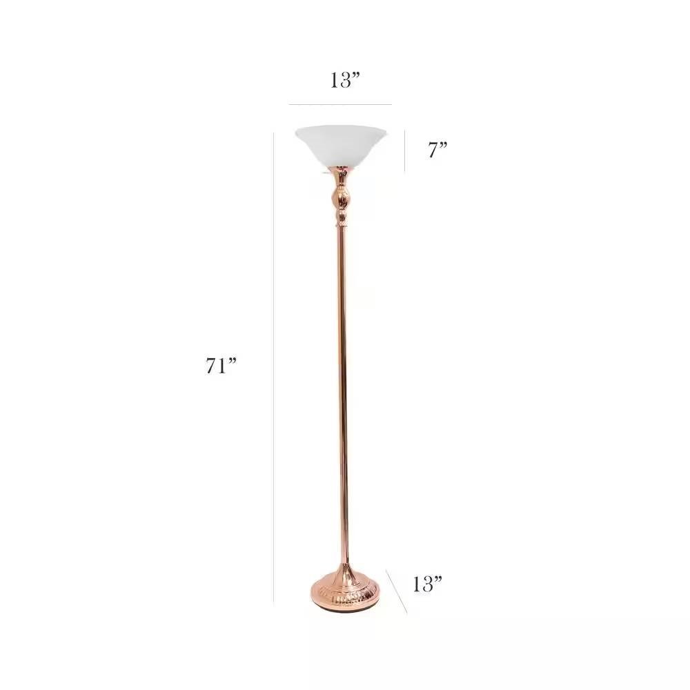 • Rose Gold Copper Finish Metal Floor Lamp Torchiere with White Glass Shade
