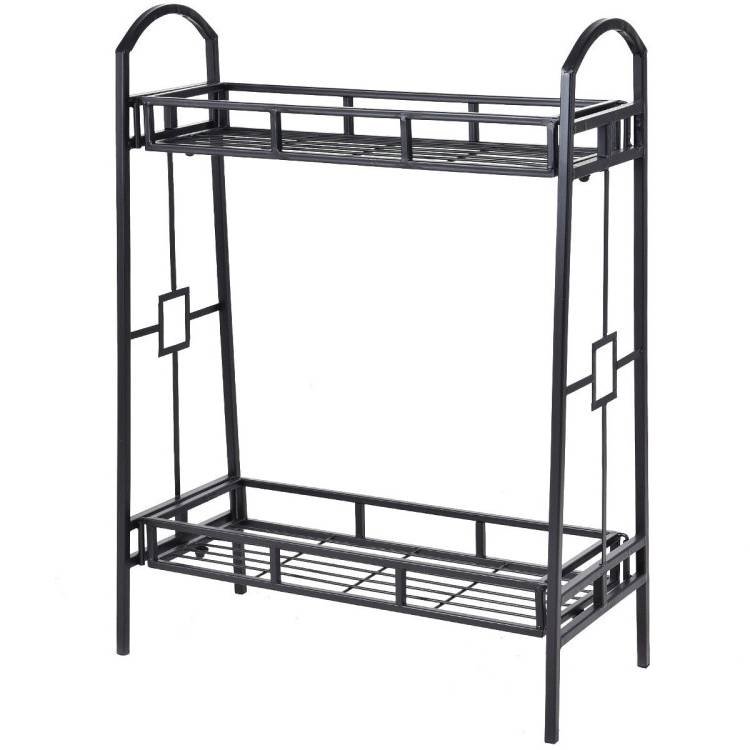 This Rustic Heavy Duty Indoor/Outdoor 2 Tier Plant Stand Planter Shelves is durable, stable, and easy to move. The 2 tiers of shelves provide attractive displays of potted flowers. The black finish and neat design will add an elegant and stunning display to your plants. Suitable for both indoor and outdoor use with contemporary tray design. All weather and water resistant.