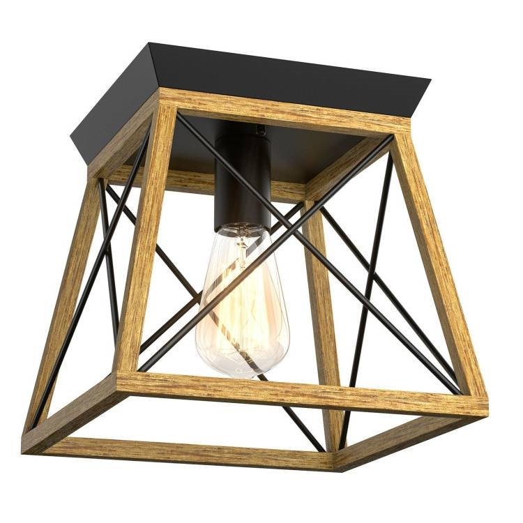 Add retro to your home dÈcor with our flush mount ceiling light! This Rustic Wood Metal Glass Ceiling Light uses Standard E26 size Bulb - Not Included is made up of a premium iron frame, which is strong enough to last a long time. In addition, the blend of black and wood grain colors on the exterior gives it a retro yet refined look that will complement any interior application, including living room, dining room, bedroom, kitchen, hallway, basement and more. Moreover, open design increases light transmittance to ensure a high-quality light source. What's more, it works with Edison bulbs, incandescent bulbs, LEDs, CFL bulbs and compatible dimmer switches to provide flexibility. If you are looking for such a product, don't hesitate to place an order!