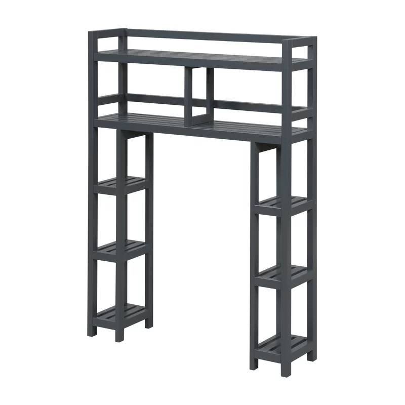 This Solid Wood Over the Toilet Bathroom Storage Unit in Black Graphite Finish is the ideal choice for any bathroom. Crafted from 100% Solid Wood (Birch), this modern design will bring beauty and functionality to your dÈcor. With sleek lines and open access storage and display, you can make unusable space usable. A slim profile means it can fit in tight spaces and will not overwhelm your room. This innovative design is not only attractive, but also ensures guests can easily find washcloths, tissues, and bath rolls - all within an arm's reach. Save precious counter/sink space while adding an element of solid wood craftsmanship. Our high quality Sherwin-Williams color finishes are snag free and water-resistant. Solid Wooden furniture is durable, sturdy and timeless.
