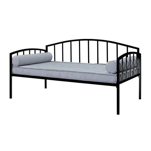 Perfect as a sofa or as a sleeper, this Twin size Modern Black Metal Daybed for Bedroom or Living Room is the perfect addition to any room setting. Its white metal frame and clean, curved design coordinates well with other pieces to best compliment any room dÈcor. This versatile twin-size daybed offers extra seating and sleeps one comfortably. Sturdily constructed, the bed includes metal slats and supporting legs for added support and comfort. No box spring is required with this style of bed.