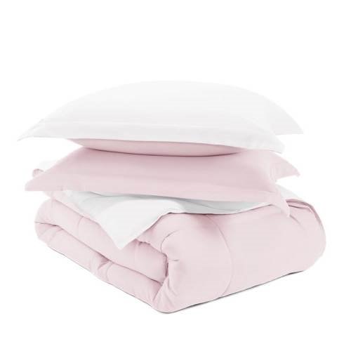 Twin/Twin XL 2-Piece Microfiber Reversible Comforter Set Blush Pink and White