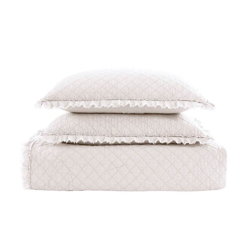 Twin White Farmhouse Microfiber Diamond Quilted Bedspread Set Frayed Edges
