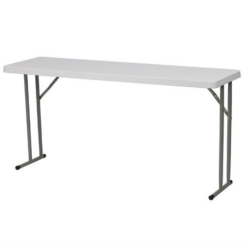 This White Top Commercial Grade 60-inch Folding Table - Holds up to 330 lbs is designed to withstand the test of time. Flash Furniture's 18"W x 60"L Folding Table features a durable stain resistant blow molded top and sturdy frame. This lightweight 5 ft. table locks in place in a SNAP with the leg locking system for easy set-ups. The space saving design can allow multiple tables in a small to large setting making it the perfect training style table for the classroom or any training facility. Not only does this table make a great training table, but can be used in banquet halls or for everyday use in the school.